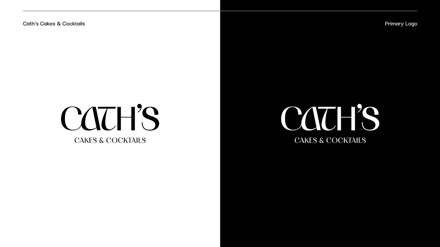 A key brief from the client was to incorporate three C’s within the logo, symbolising each aspect of the business: Cath, Cakes, and Cocktails. The result is a mark that feels both elegant and personable, grounding the brand in its founder’s character while allowing room for growth.